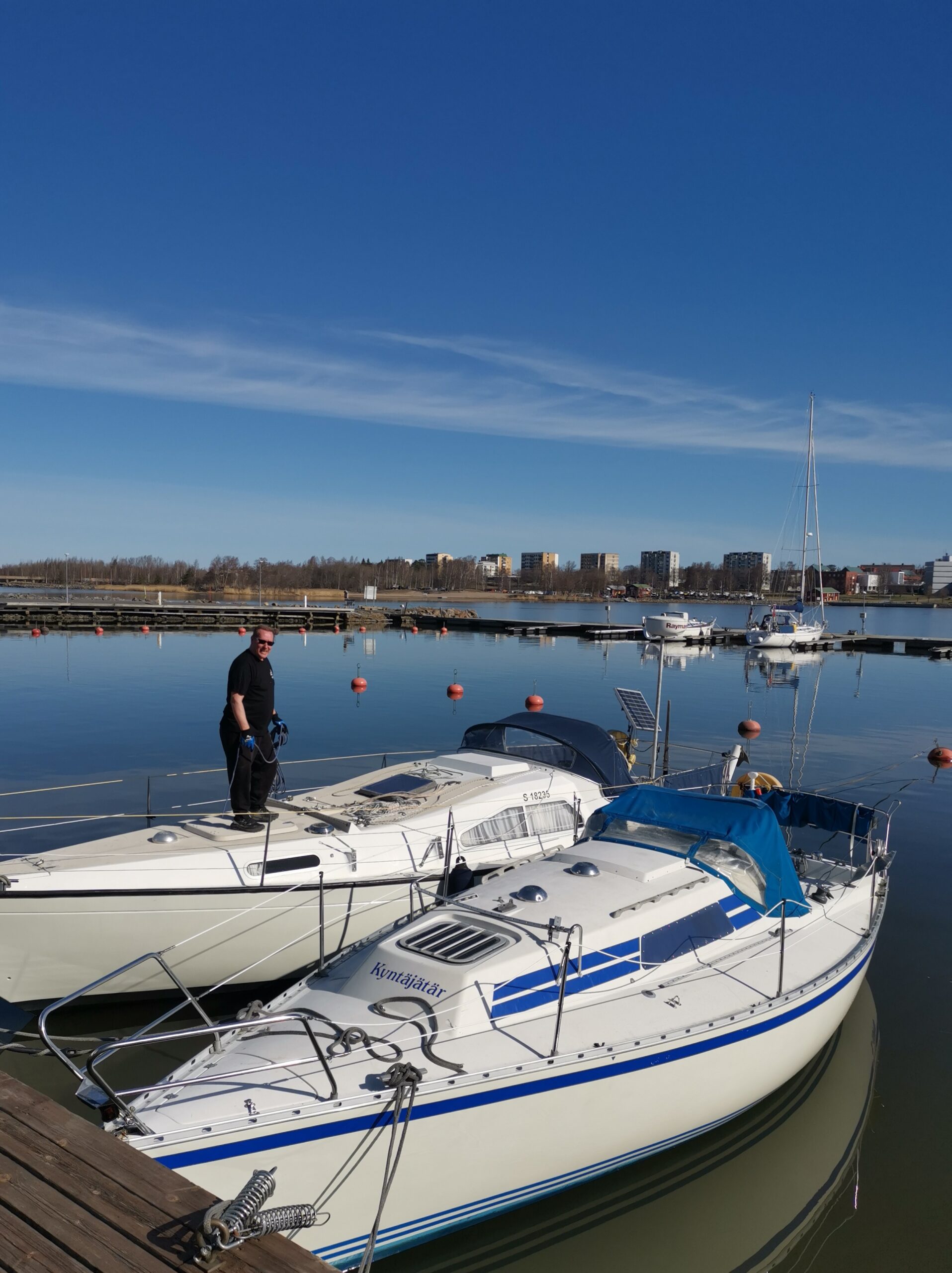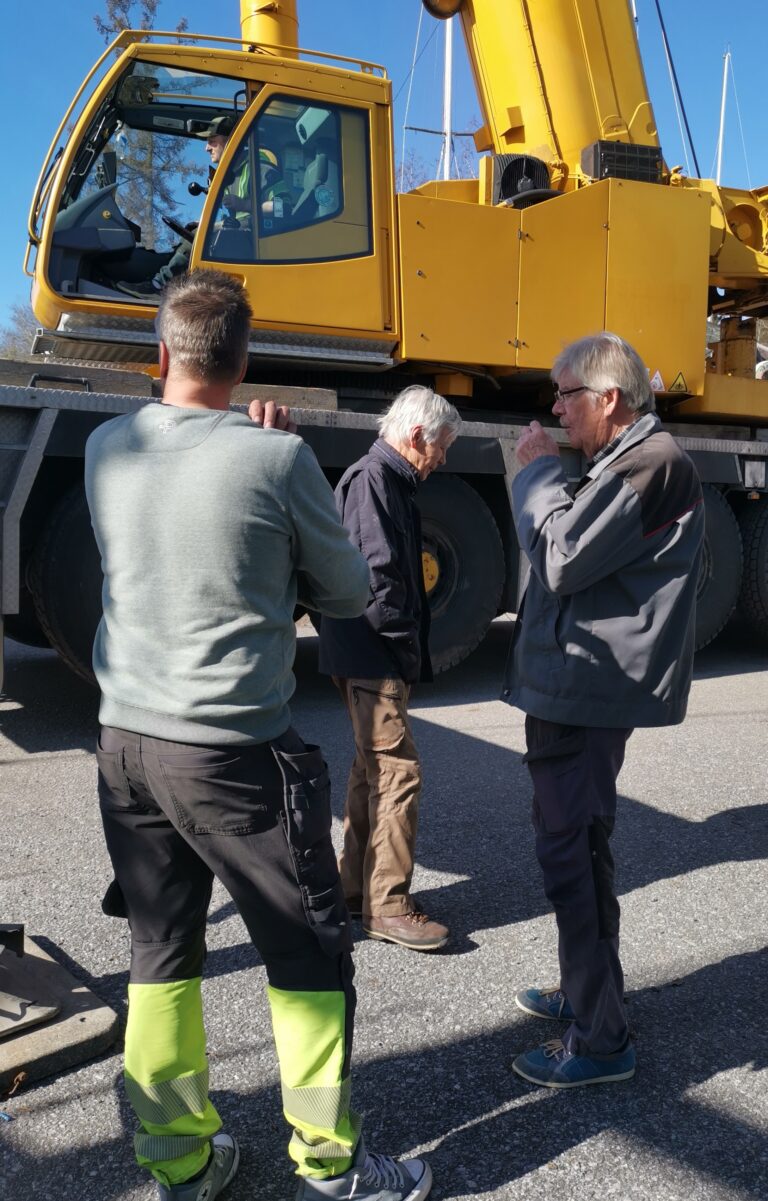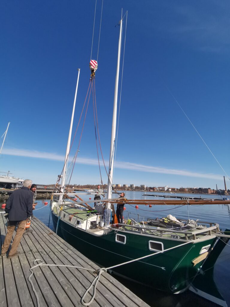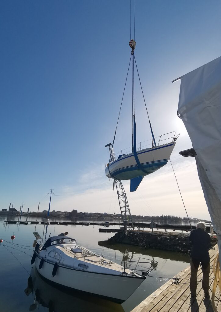 Torstaina 16.4. aamusella NostoKorven kraana ajoi satamaan ja kuusi venettä pääsi mereen. Yksi vene nousi kärrylle ja huoltoon. Myös koulutusvene Kyntäjätär nostettiin veteen. Ja laskupäivän paiste oli täydellinen. Yhdessä veneiden lasku sujui rutiinilla, vaikka uusi nosturi olikin paikalla. Hyvä tuttavuus.